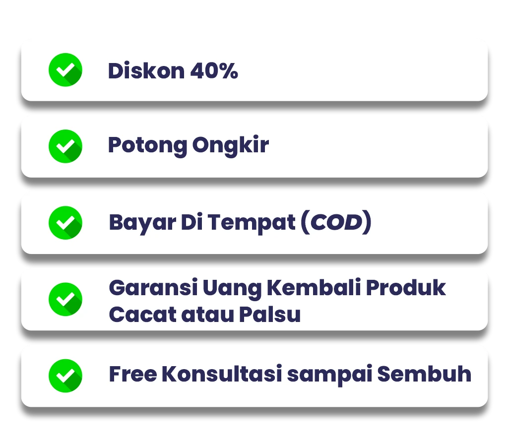 Catatan : hasil setiap orang dapat berbeda-beda tergantung pada kondisi tubuh, serta tingkat masalah yang dimiliki. jumlah produk yang diperlukan agar manfaat yang dirasakan setelah pemakaian produk juga bervariasi. gunakan informasi yang asli dihalaman ini sebagai refrensi anda dan perlu diketahui bahwa produk yang kami jual terjamin asli dan lega yang diakui BPOM RI